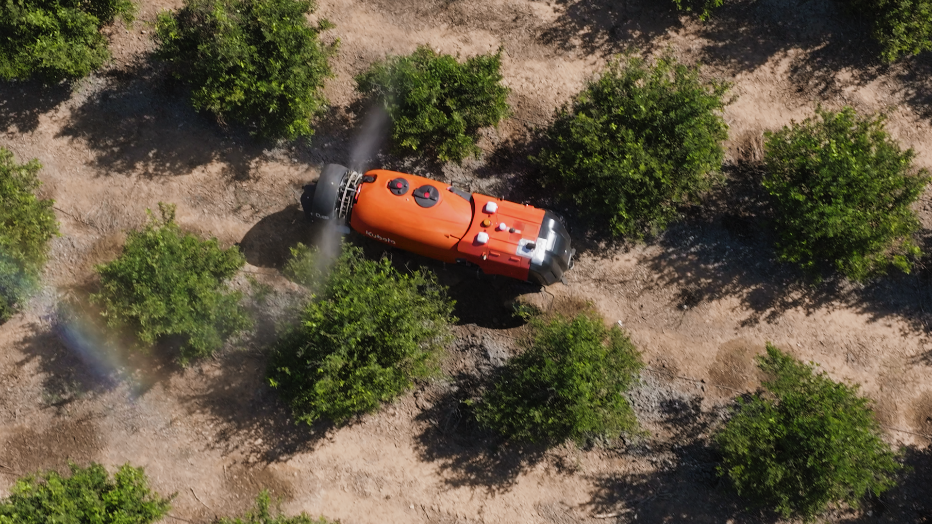 Powered by a V3800-TIE5 diesel engine and equipped with 4-wheel drive and steering, KFAST navigates orchards with ease. Its AGC Navigation System uses RTK GPS and LiDAR for safe, accurate path following, even on slopes up to 10°.
