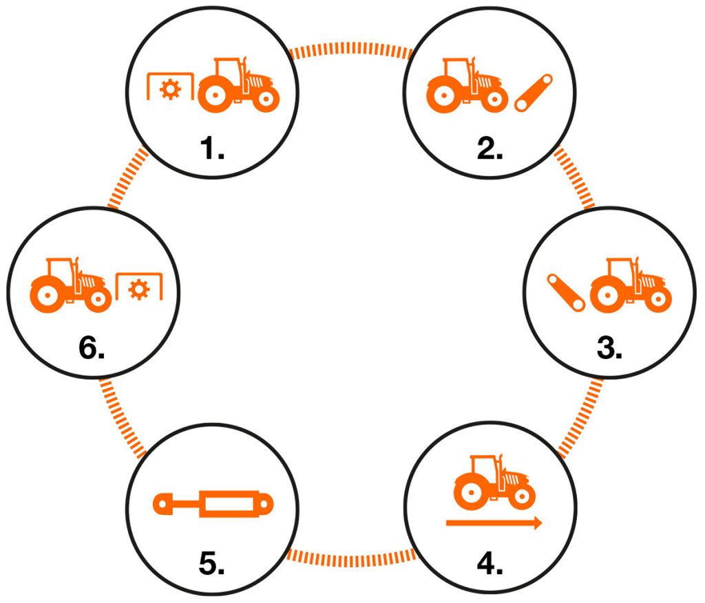 With Tractor Implement Management (TIM) onboard, the operator only has to concentrate on the first two steps: